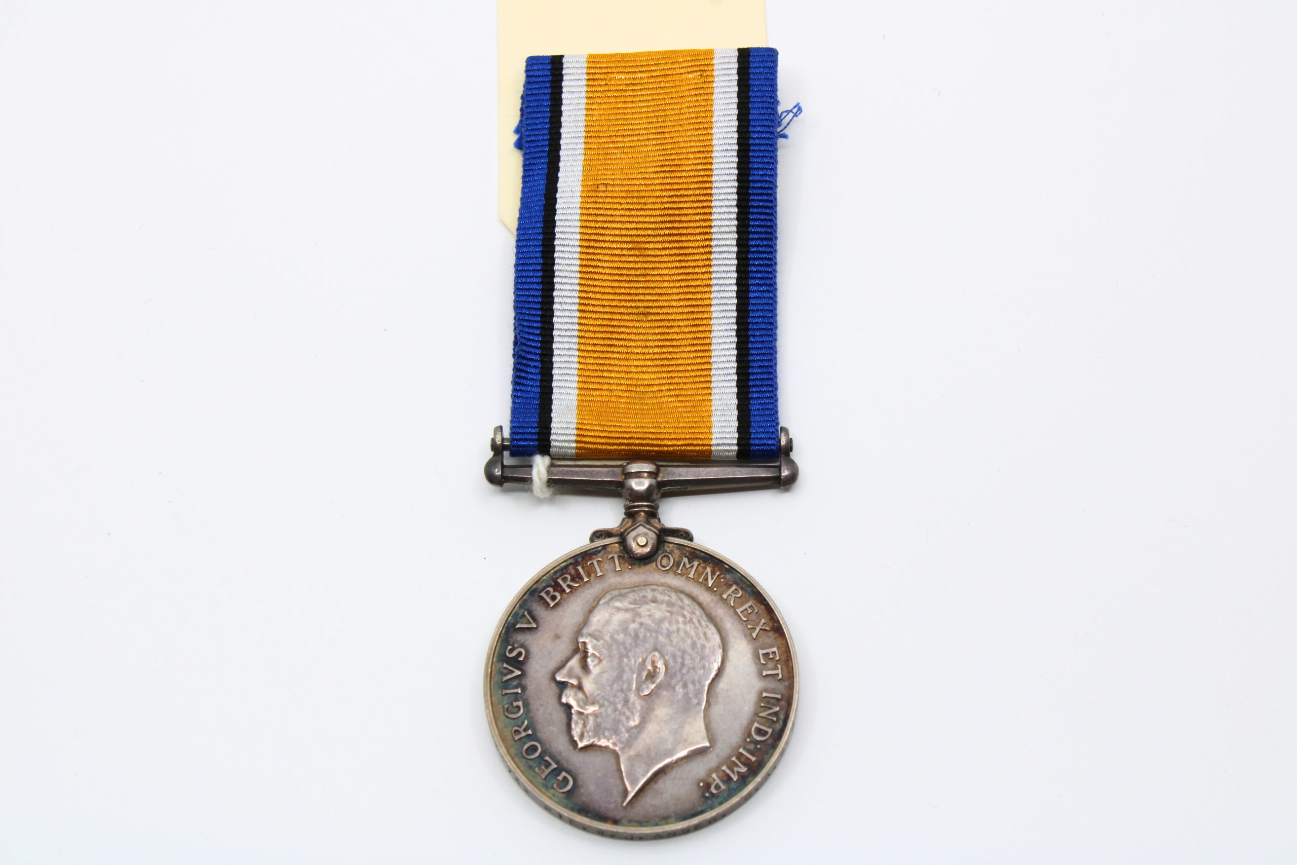 Circular silver campaign medal suspended from a silk ribbon of orange center flanked by white and black stripes, edged in blue. The obverse shows the