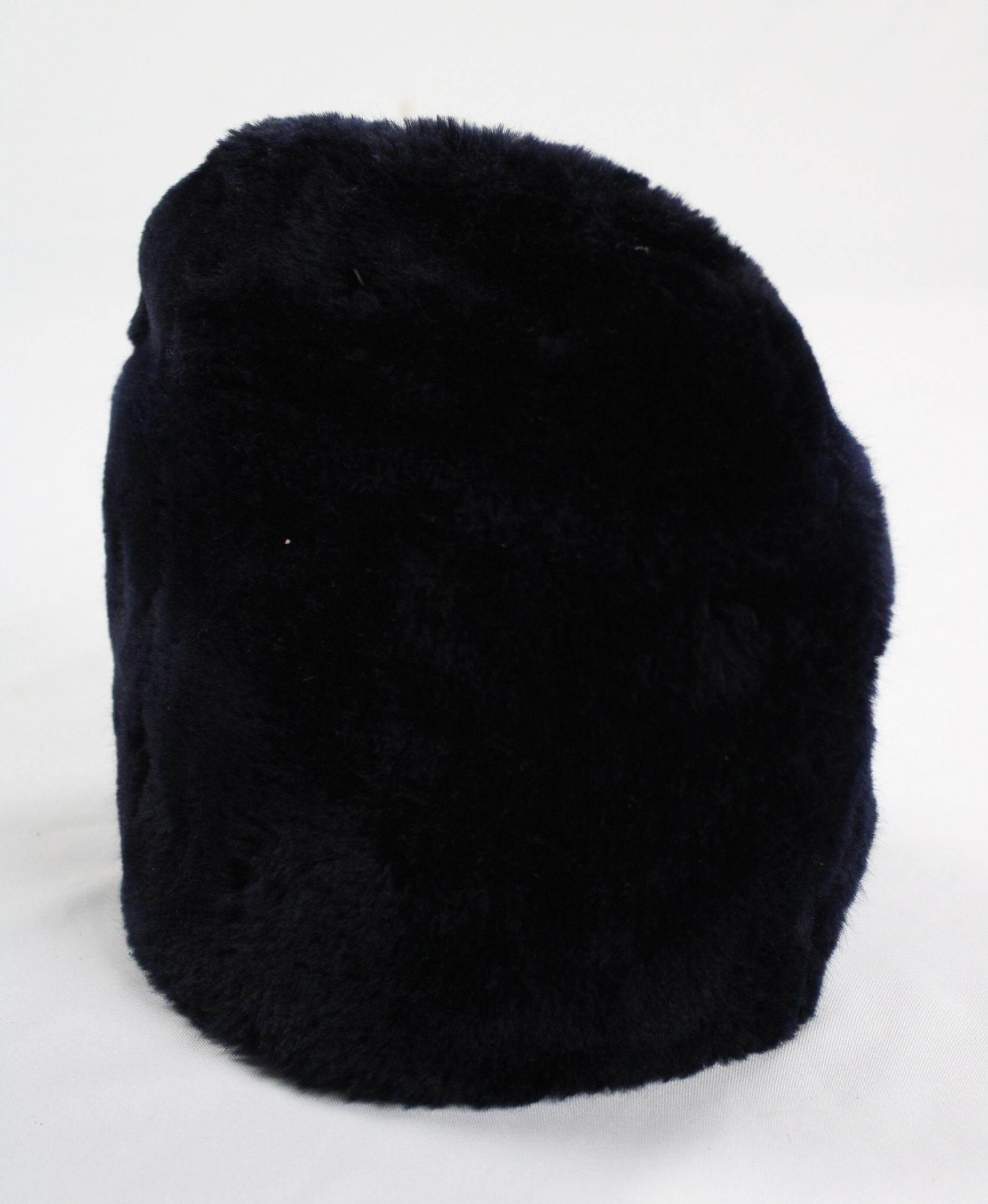 A Canadian Forces issue winter cap made of dark navy or black synthetic fur with a soft, plush texture. The cap features a tall cylindrical crown with