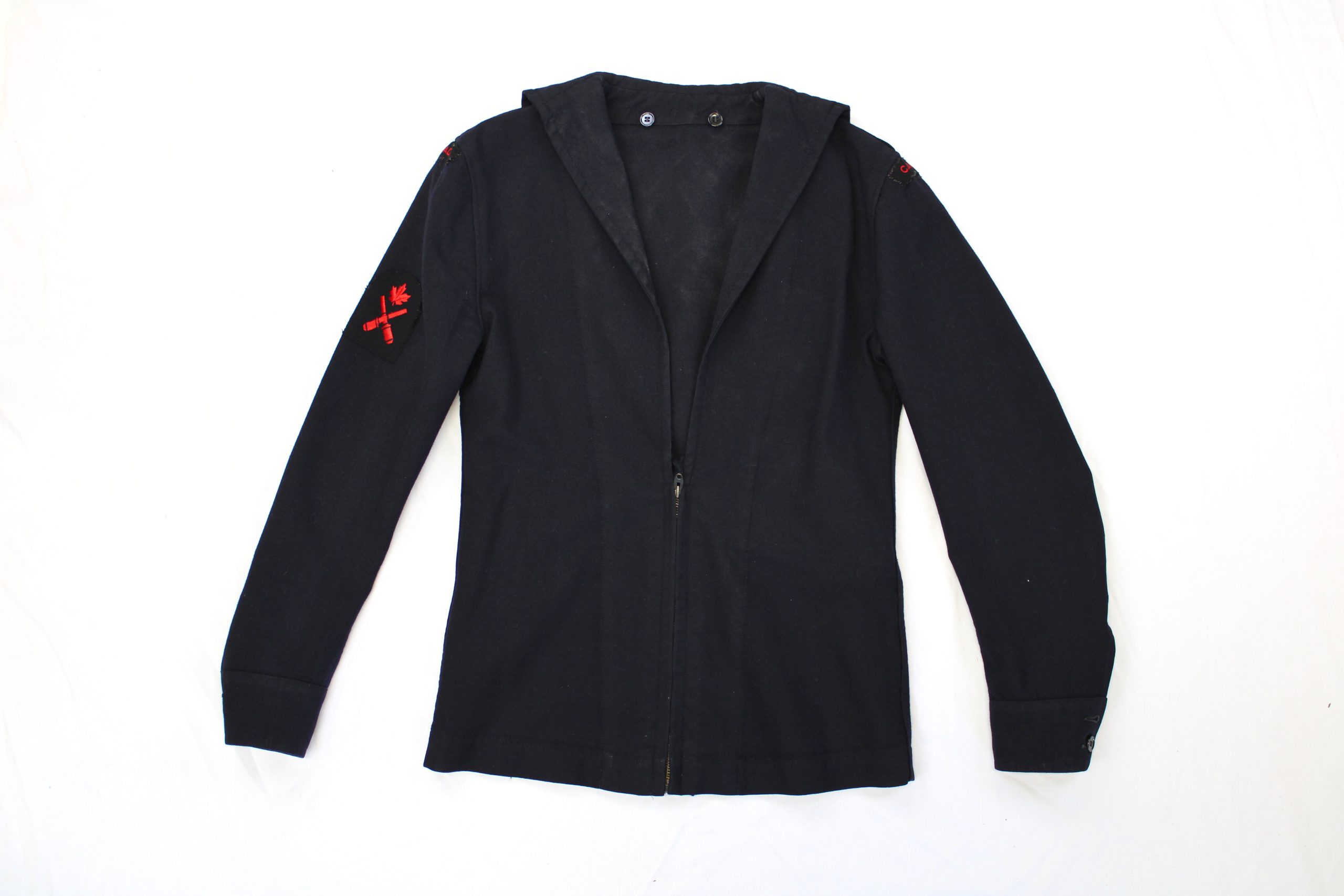 Navy Uniform includes 2 neck pieces, the berret, pants & jacket to match. The jacket has 2 CANADA badges & one signalman badge on right sleeve