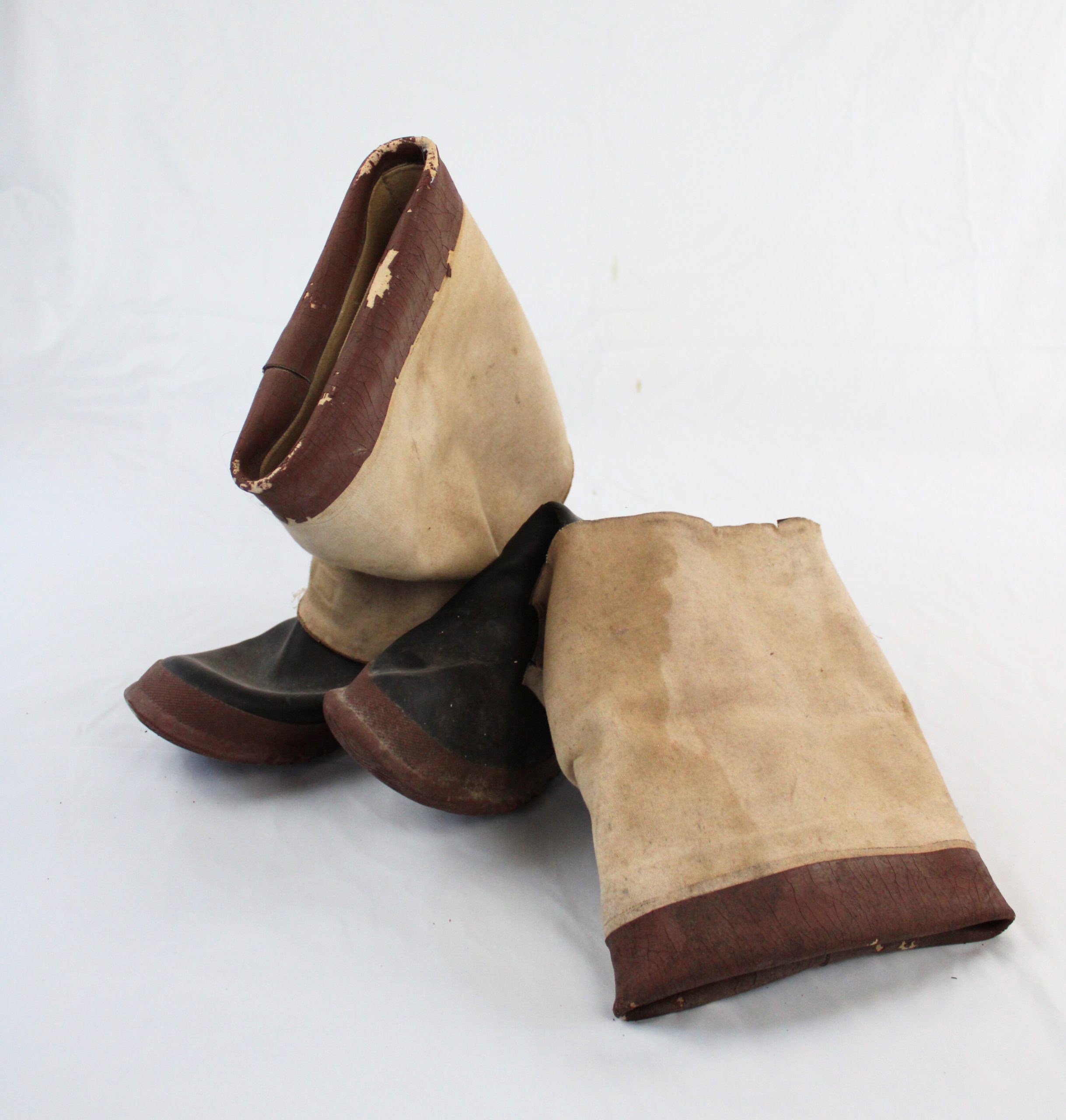 Boots feature black rubber feet and heels, with rust-coloured sol