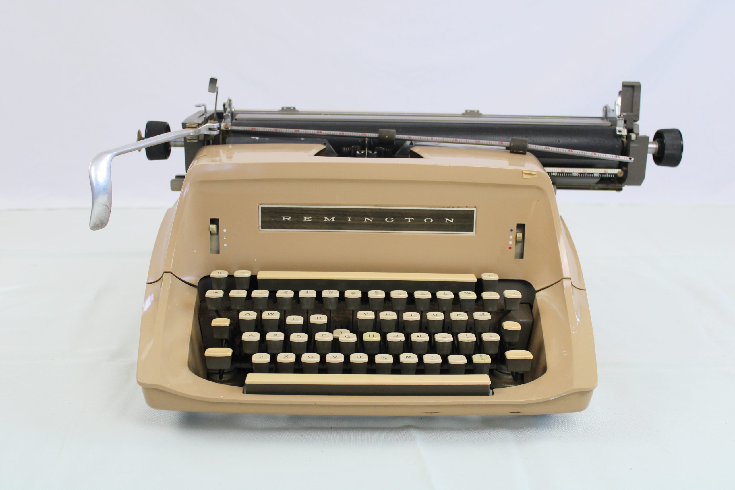 -Beige enamel casing with “Remington” metal nameplate in silver and