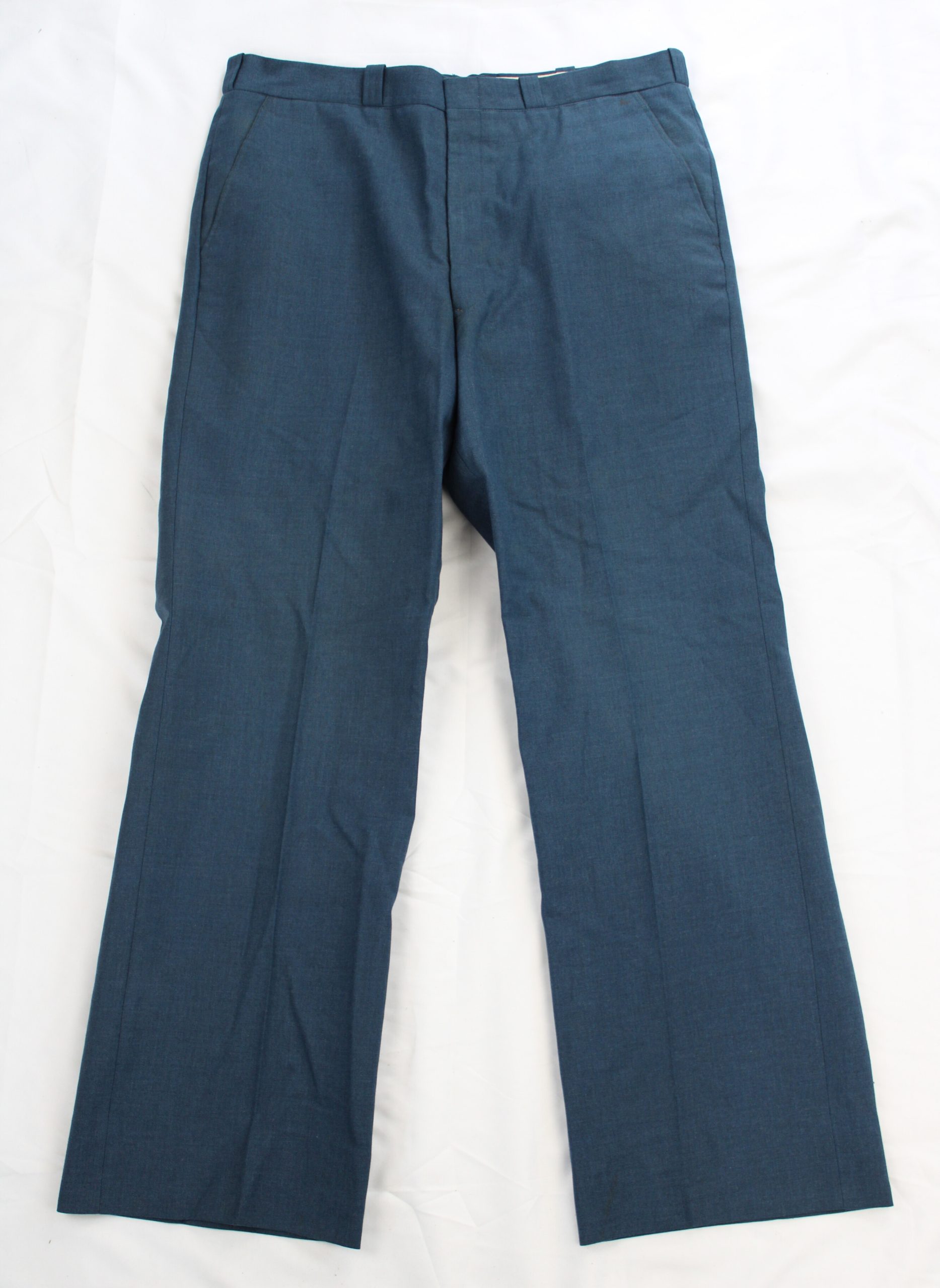 Blue wool-blend trousers forming part of a Royal Canadian Air Force service dress uniform. The trousers feature two side pockets, two rear welt pocket