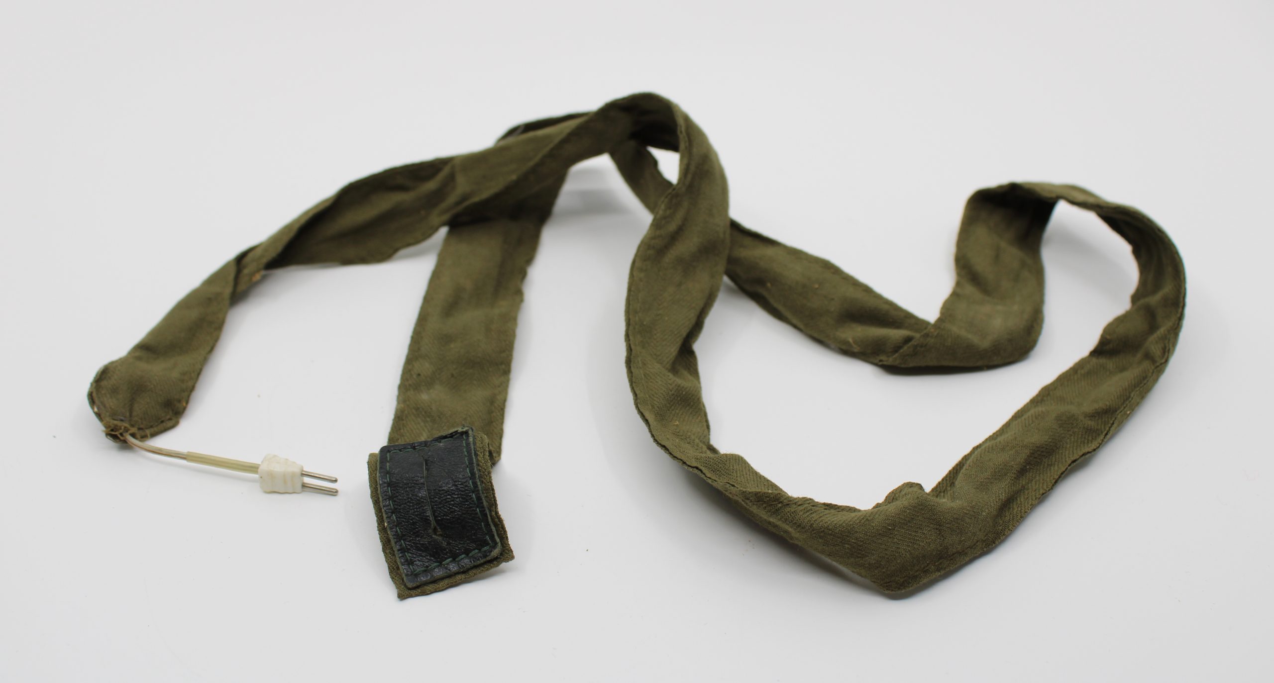 A cloth-encased auxiliary antenna designed for use with the Telefunken PE-484 field radio receiver. The olive-green textile cover encloses a flexible