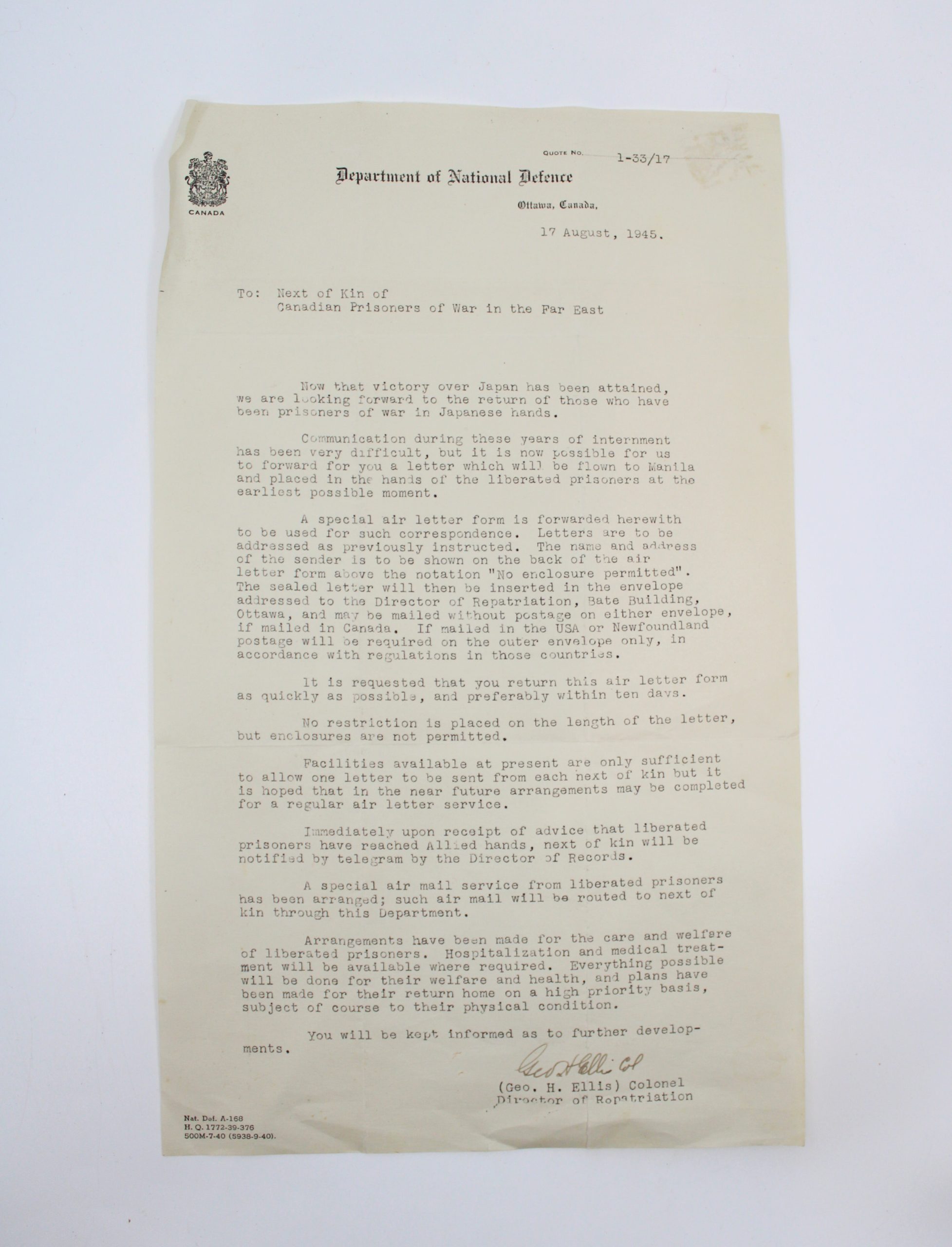 See our collection ! UBIOUE pin soldier’s notebook coin photo Royal Canadian Navy Christmas Card WW1 tin letter ship photo Royal Rifles Christmas Card photo of the Chenell brothers coin letter Department of national defense leather wallet UBIOUE pin The Prisoner of War journal The Canadian Red Cross Society letter «1…6465666768…75»