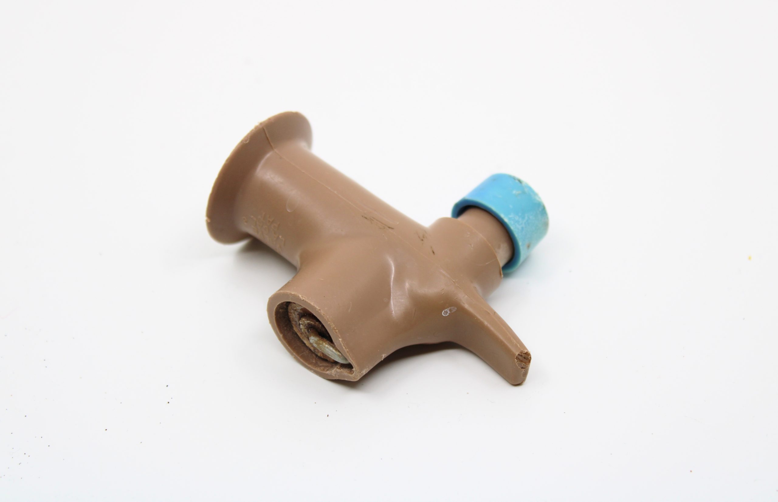 Large glass vacuum radio valve with black bakelite base and metal cap electrode at the tip. The internal metal components (plate, cathode, and grid as