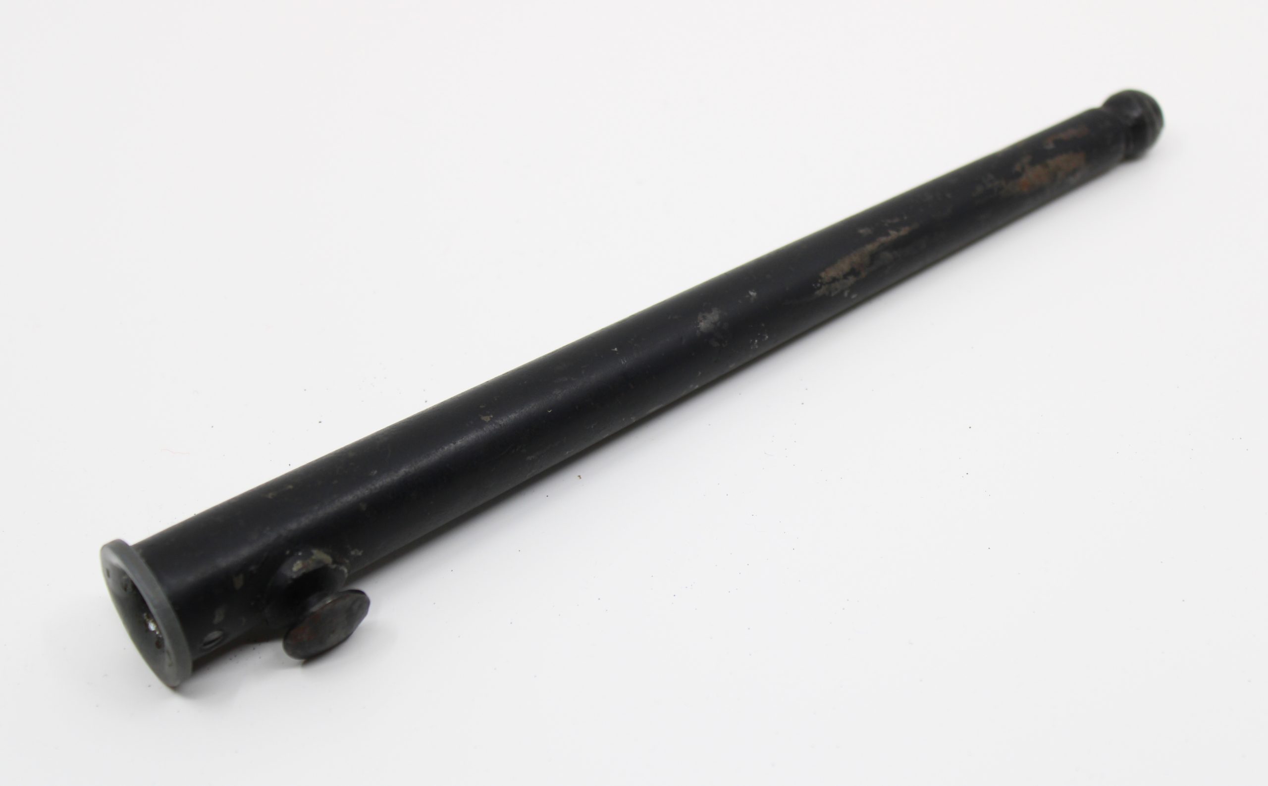 Cylindrical glass vacuum tube with metal interior components and five metal connection pins at the base. The glass envelope is slightly darkened at th
