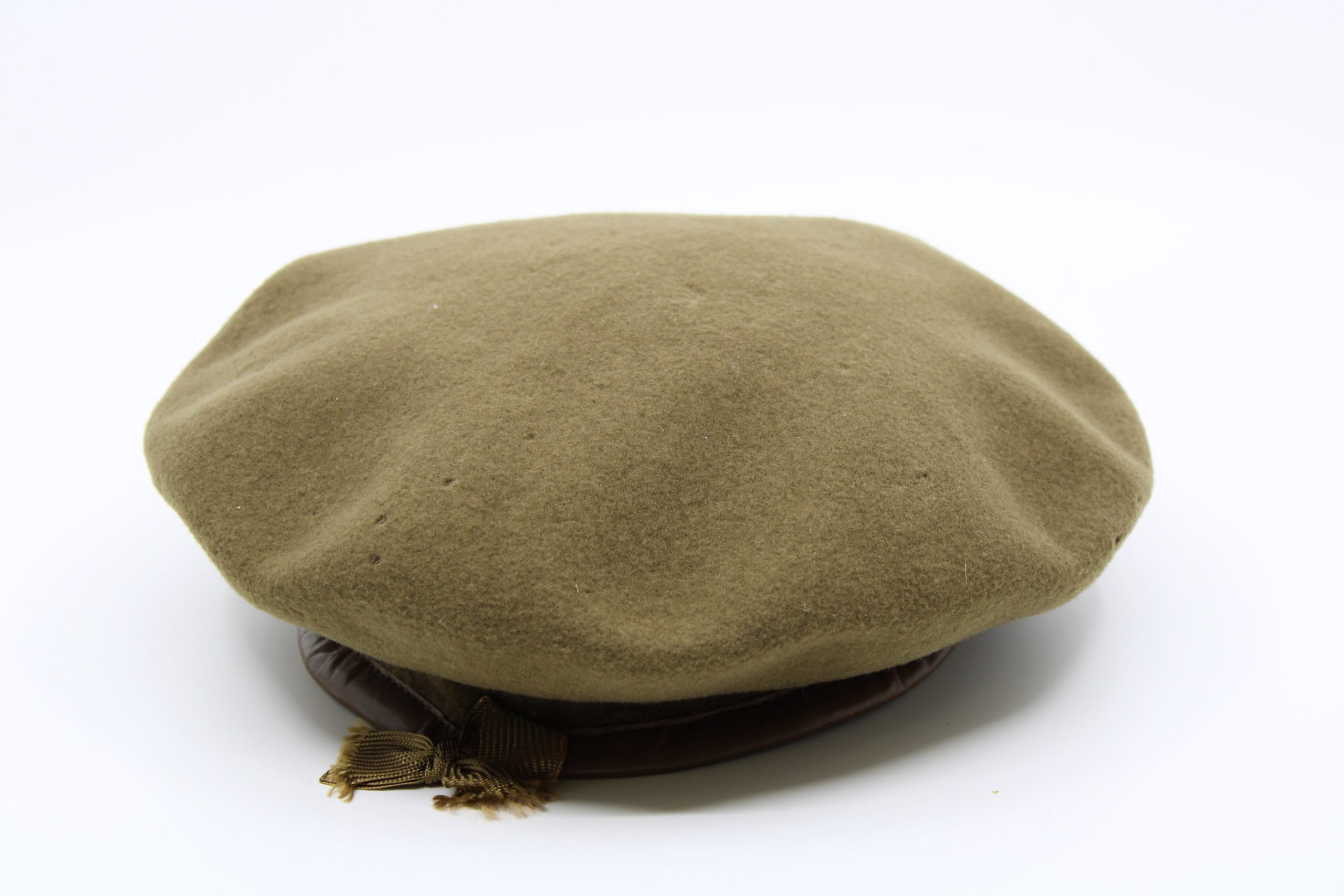 Olive-green wool military beret belonging to Franklin Howard McColm, member of the Royal Rifles of Canada during the Second World War. The interior is