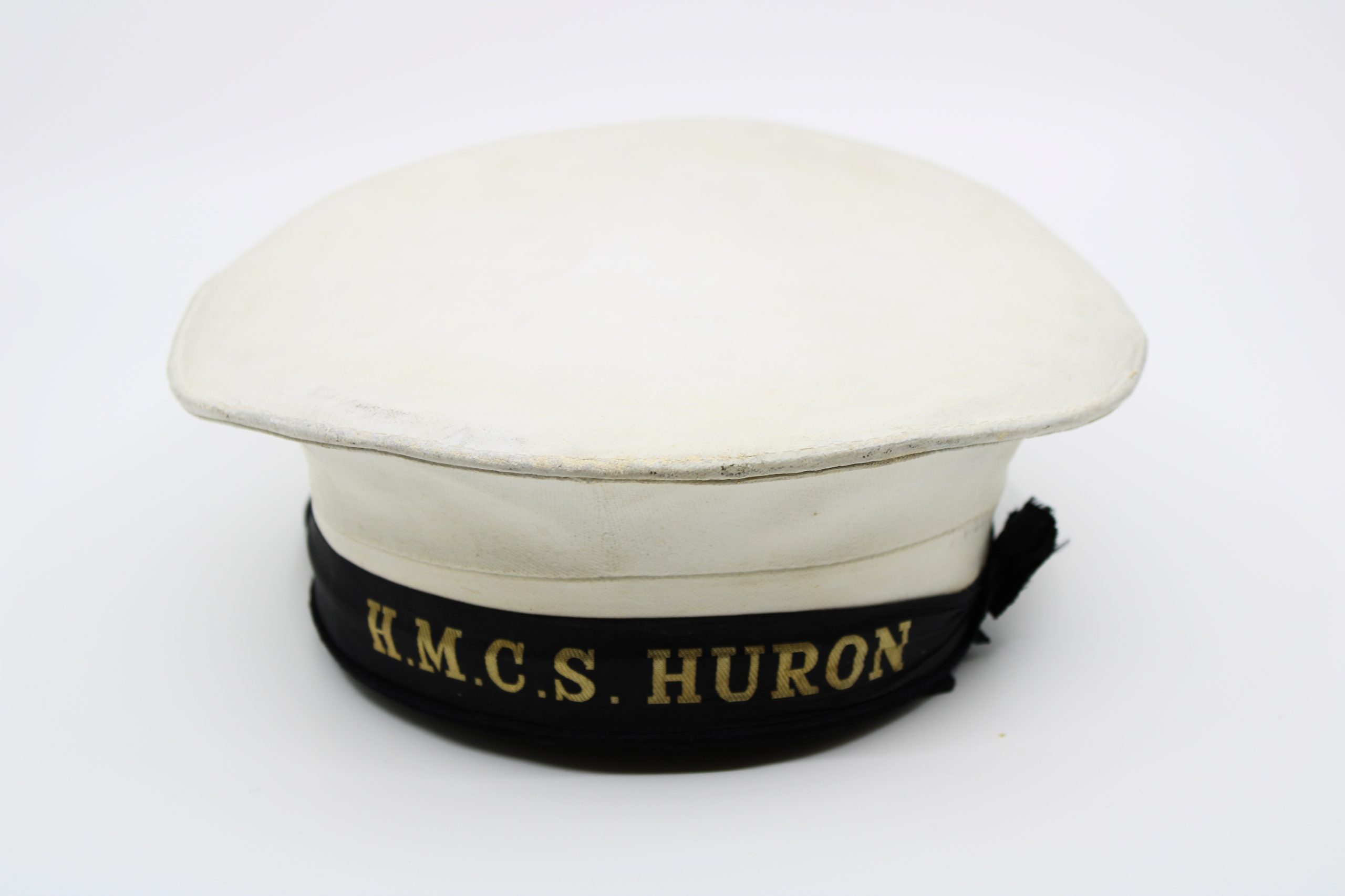 Navy Uniform includes 2 neck pieces, the berret, pants & jacket to match The berret has H.M.C.S. Huron on the hat tally. The name « HAMILTON » is wr