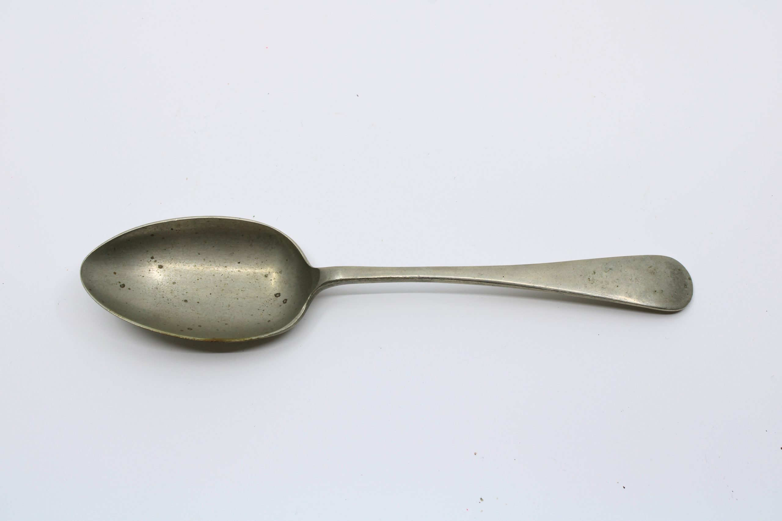 Simple metal spoon with an oval bowl and a tapered, rounded-end handle.